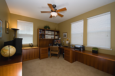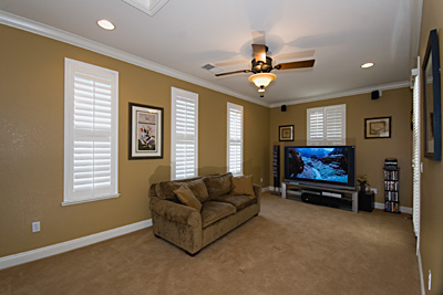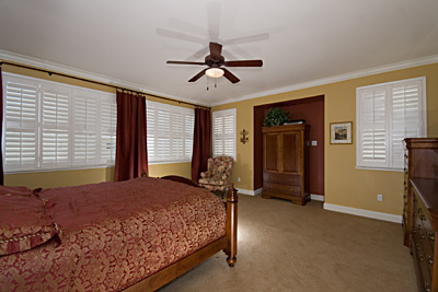 | Upstairs hallway - view towards Master bedroom suite | Master bedroom suite - Alabaster ceiling fan - Plantation shutters |