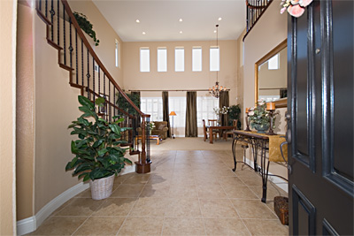 | Front - Two car garage - Landscaped garden | Tile entry - Double high ceilings |