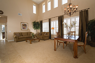 | Living room - Plantation shutters - Sky windows | Living room - View towards Downstairs guest suite/office |
