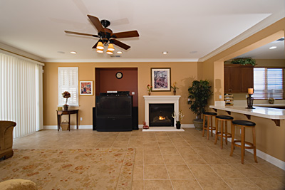 | Tile great room - Access to backyard - Backyard landscaping in process | Great room - Breakfast bar - Fireplace - Built-in bar |